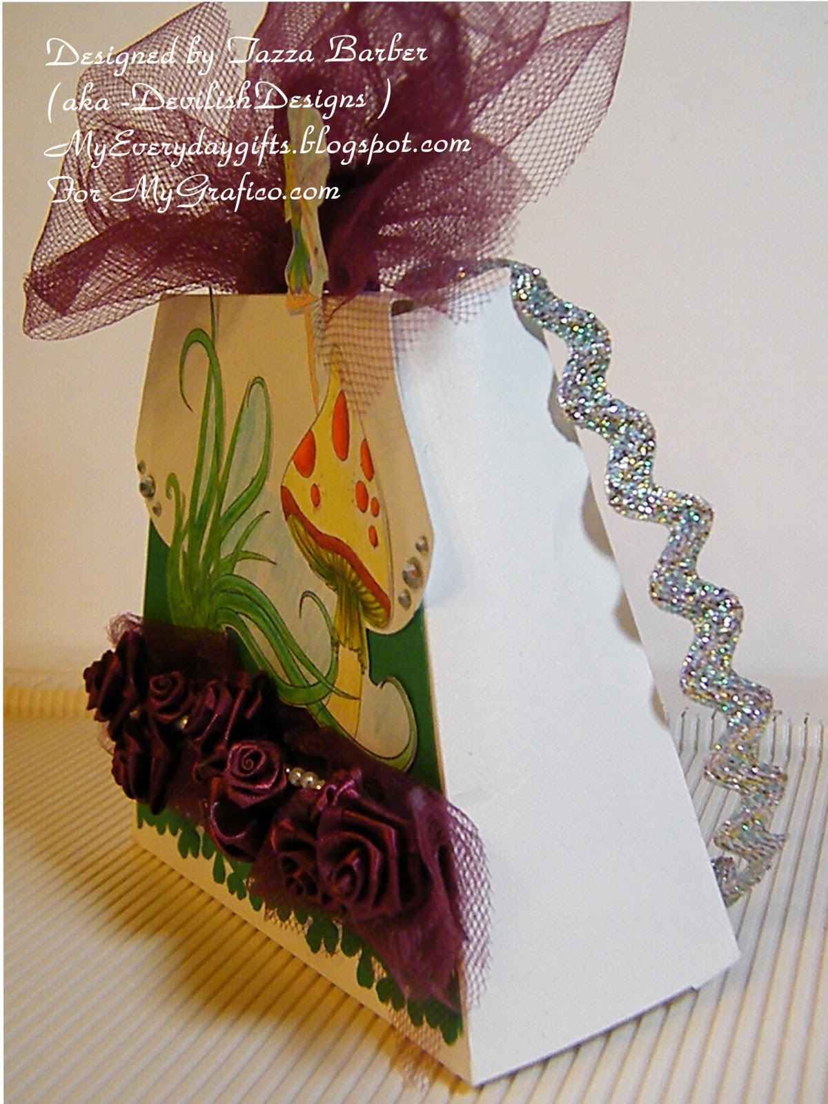 I used tulle and made a bow then used some metallic rick rack to make the purse handle.